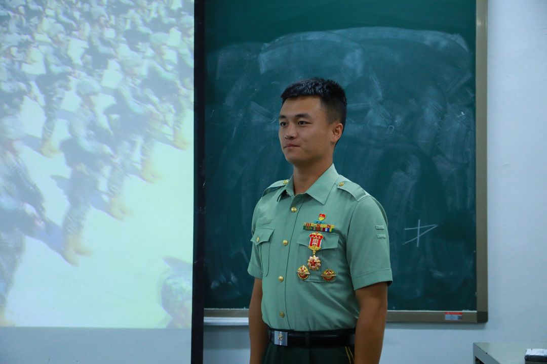 观影后,退役复学学生冯自成与新生分享了自己的军旅经历。作为一名曾在部队荣立“三等功”的优秀军人,他用朴实的话语诠释了当代军人的使命与担当:“一顶军帽,顶的是责任;一身戎装,穿的是庄严;一双军鞋,走的是神圣;一个军人,看的是军魂,担的是使命。”