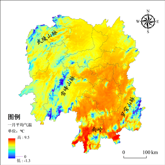 湖南省一月平均气温
