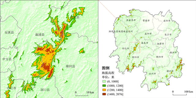 湖南省及雪峰山地势高程