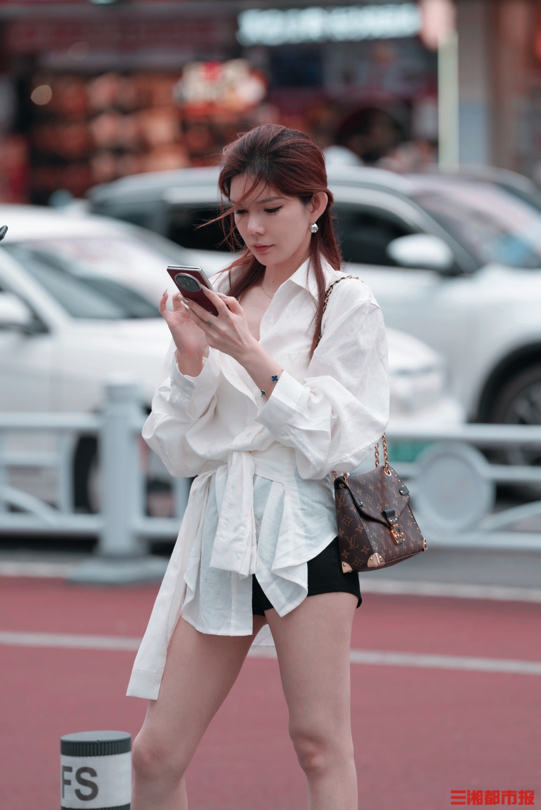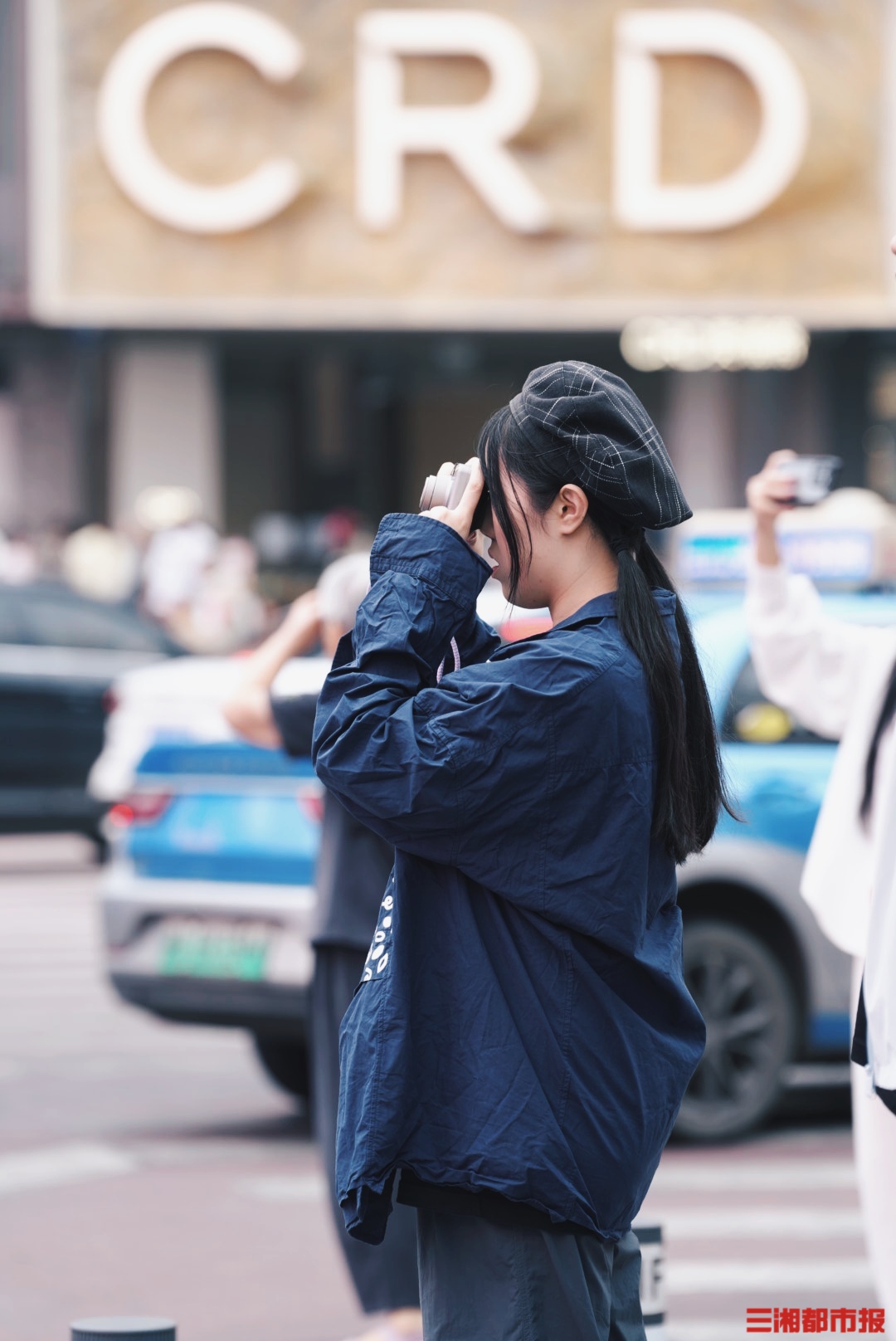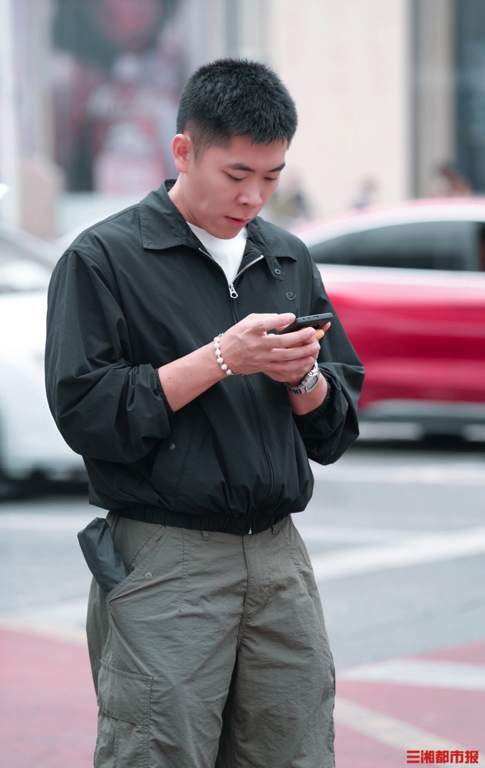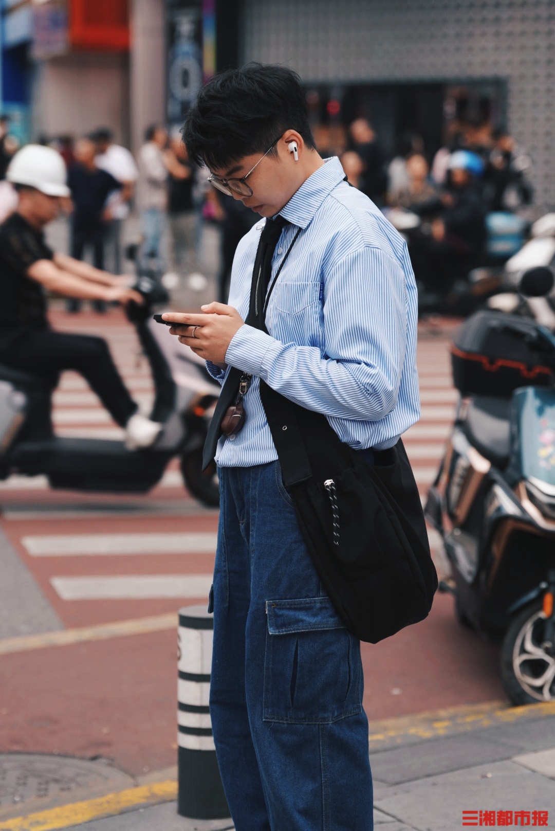 前一天还在38C°的长沙街头热到融化,今天就被24C°的秋风温柔拥抱,看看长沙街头的初秋Look,一秒开启“换季盲盒”。(顾荣 摄)