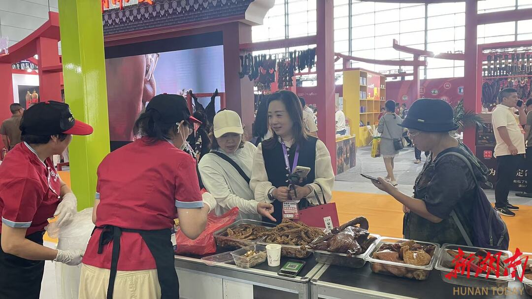 “早就听闻武冈是‘中国卤菜之都’,今天亲口尝过,果然名不虚传!”来自江西萍乡的客商许女士在品尝金福元卤菜后赞不绝口,并现场与陈氏福元卤业食品有限责任公司总经理任银兰就合作事宜进行洽谈。为充分展示武冈食品产业实力,该市精心组织乡乡嘴、金福元、铜鹅伟业、青钱柳、双全食品、仰康源6家特色企业参展,展品涵盖卤制品、豆制品、铜鹅深加工产品等多个品类。展会期间,现场咨询、洽谈合作的客商络绎不绝。