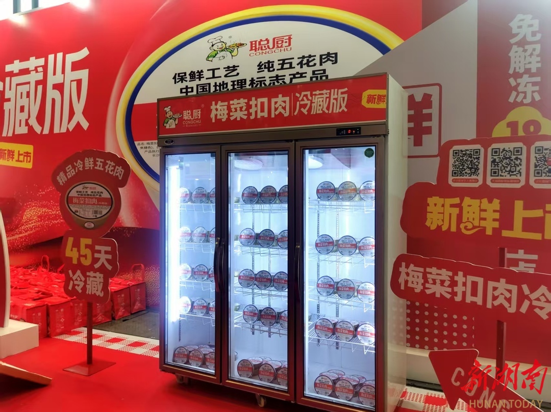 发布会上,聪厨食品董事长唐步聪亲自揭晓了行业首创产品——梅菜扣肉(冷藏版)。这款新品凭借“免解冻,18分钟上桌”的独特体验,瞬间抓住了所有人的目光,成为全场焦点。