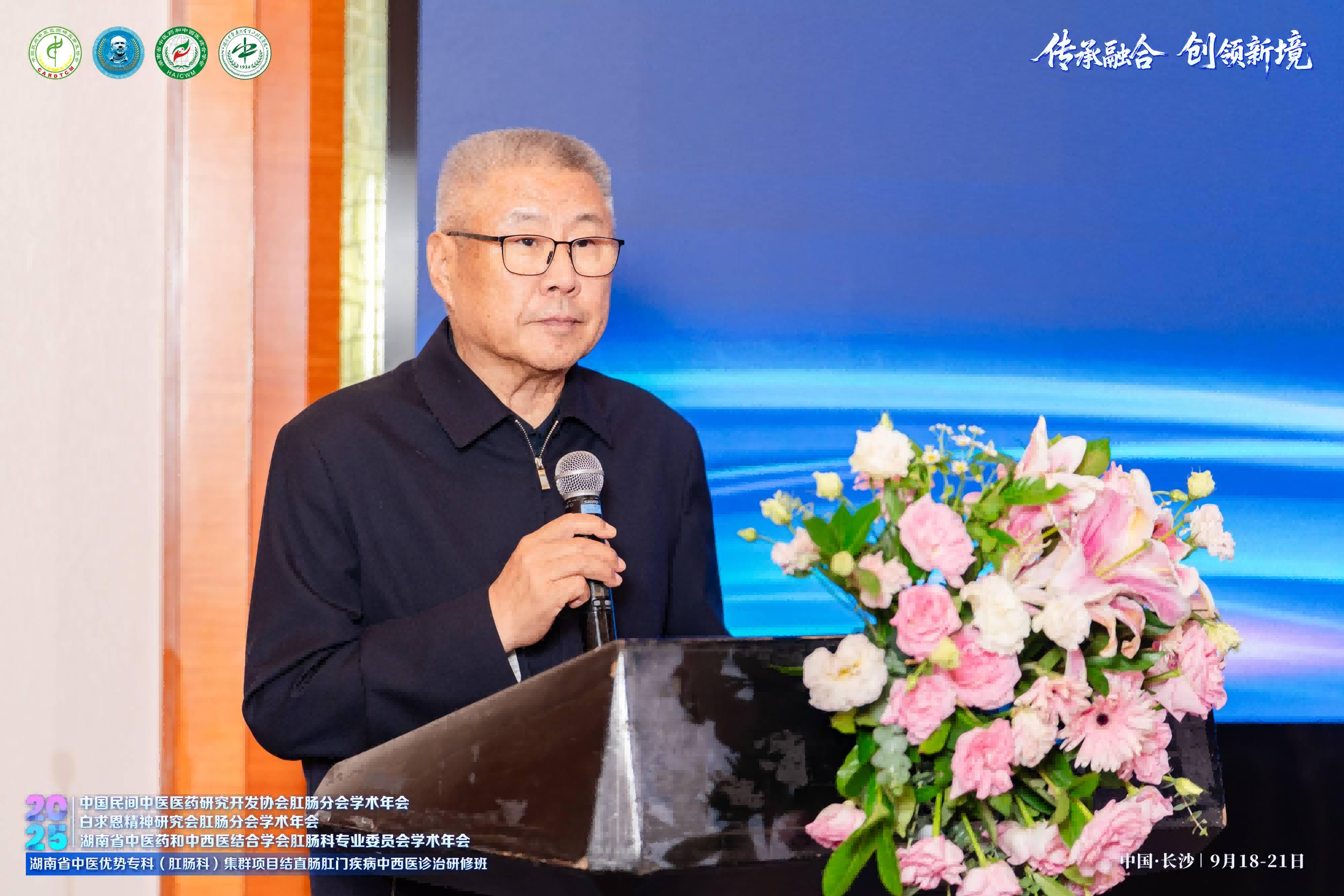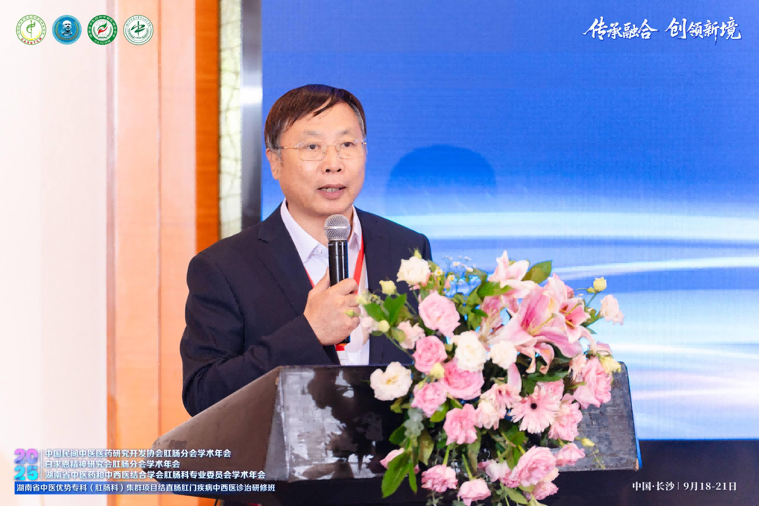 湖南中医药大学副校长刘红华出席会议并致辞,他表示,学校将一如既往地为中医肛肠学科的建设发展保驾护航,持续投入人才、平台与技术资源,努力将湖南省肛肠事业推向更高发展高度。