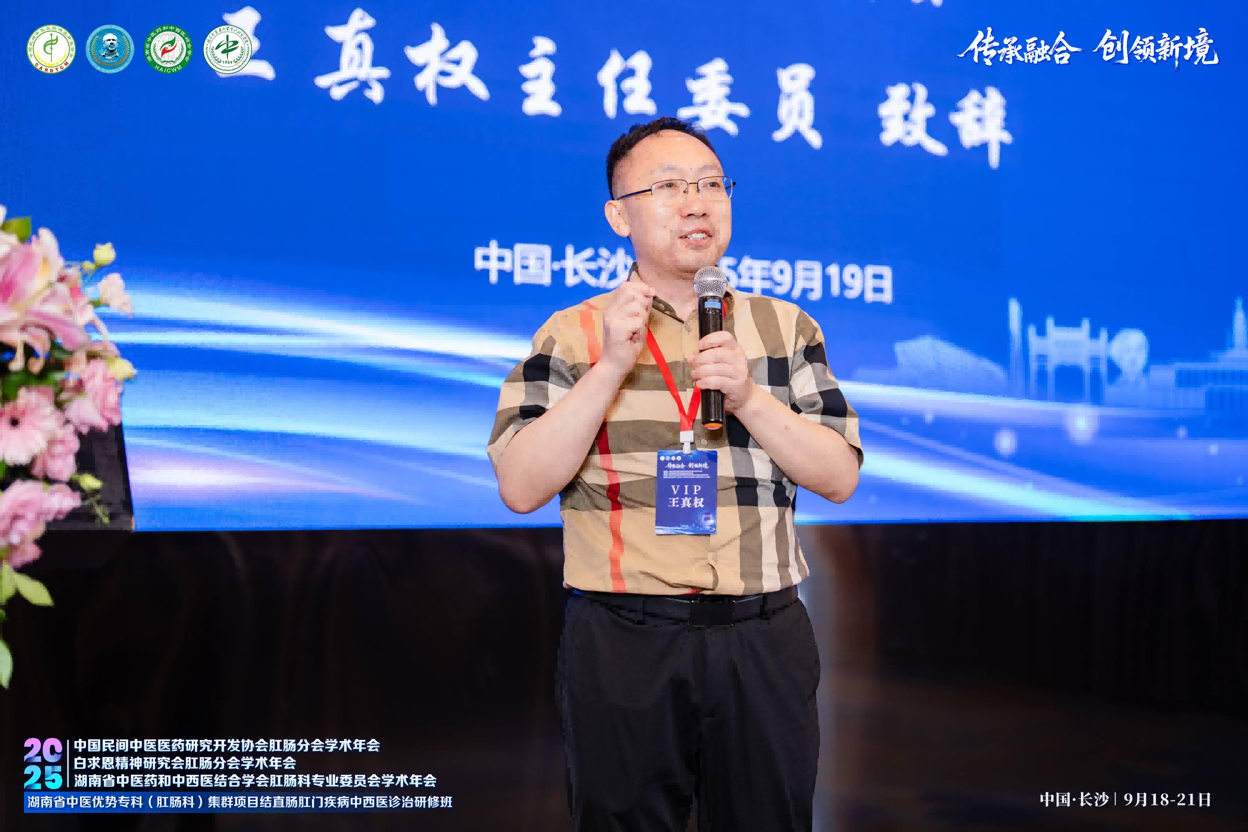 (湖南中医药大学第二附属医院肛肠中心主任王真权担任大会主席并致辞)