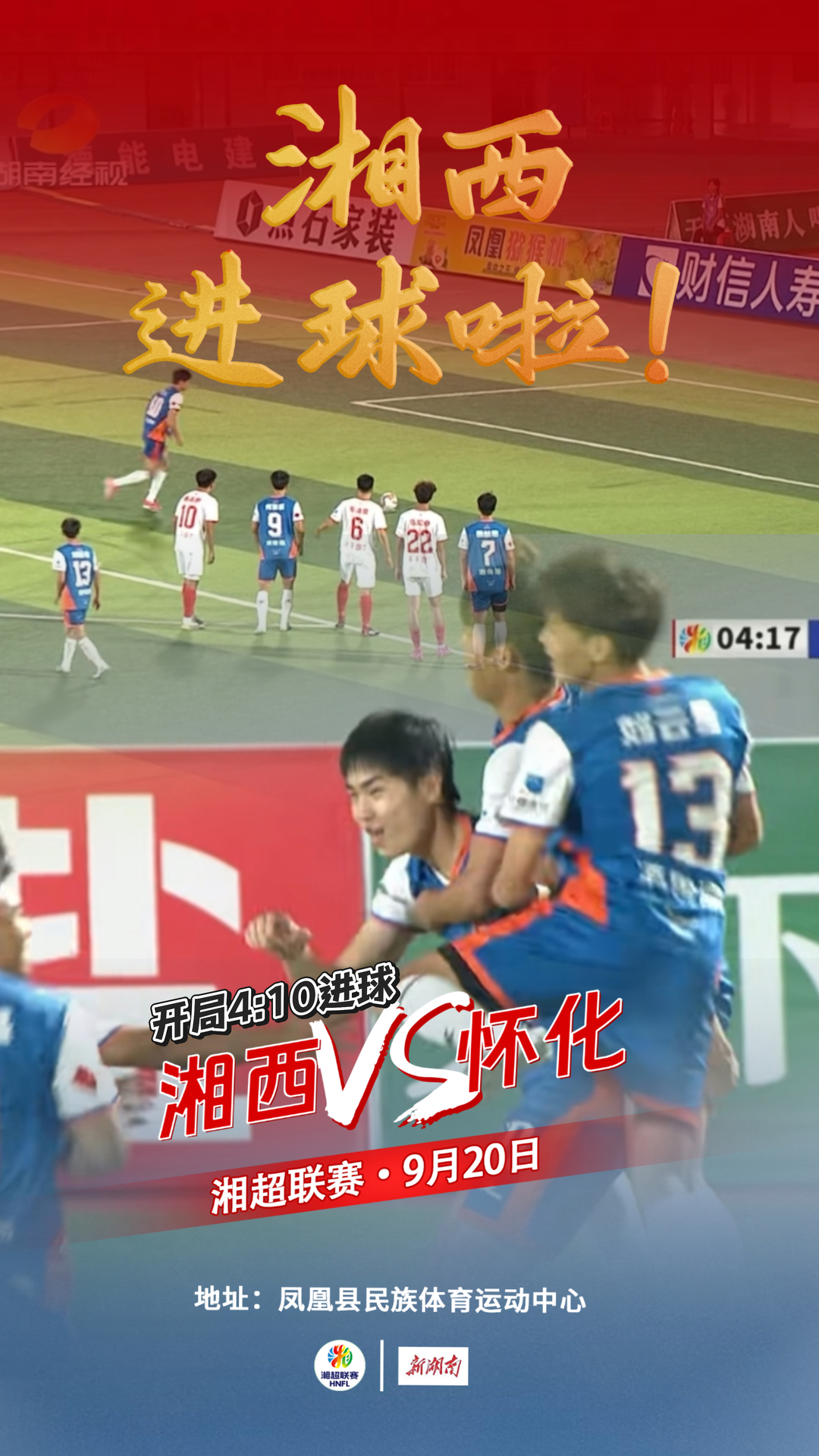 湖南日报·新湖南客户端9月20日讯(记者 李菁菁)9月20日晚,湘西土家族苗族自治州凤凰县民族体育运动中心,“湘超”足球联赛湘西VS怀化开场仅4分钟,湘西队获得一粒点球,湘西队10号球员王沾一蹴而就,湘西1:0怀化,收获湘西队“湘超”首球。