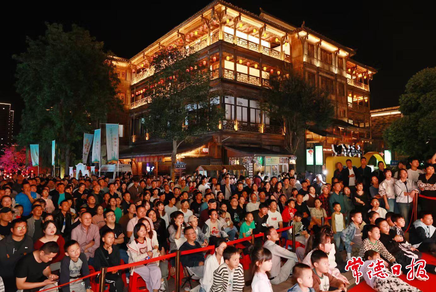 9月20日,在常德河街状元门和西街汉诺威广场,此起彼伏的喝彩声不断吸引游客驻足观看,加入到观看湘超的队伍中来。当晚,常德队1:0险胜娄底队,取得“湘超”两连胜。在常德河街现场观看的球迷们,为这场来之不易的胜利放肆呐喊。