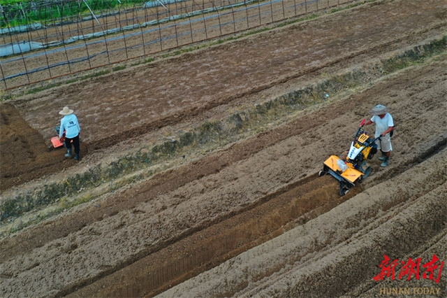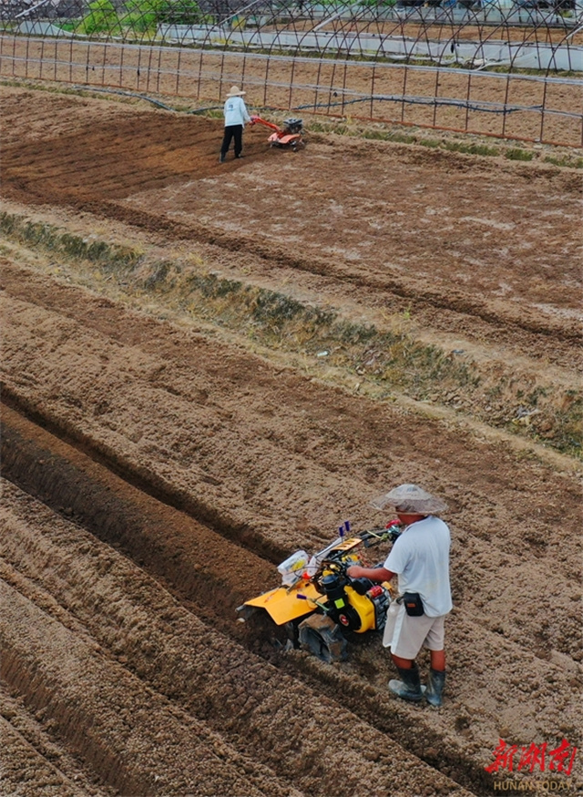 As the autumn farming season approaches, farmers across Jiahe County are seizing the opportunity to carry out ploughing, land preparation, fertilization, and seedling cultivation, presenting a busy farming scene. These efforts lay a foundation for a bumper autumn and winter harvest. The photo shows a farmer ploughing a field at a strawberry plantation in Shigao Community, Jinping Town, Jiahe County. (Photo/Huang Chuntao)
