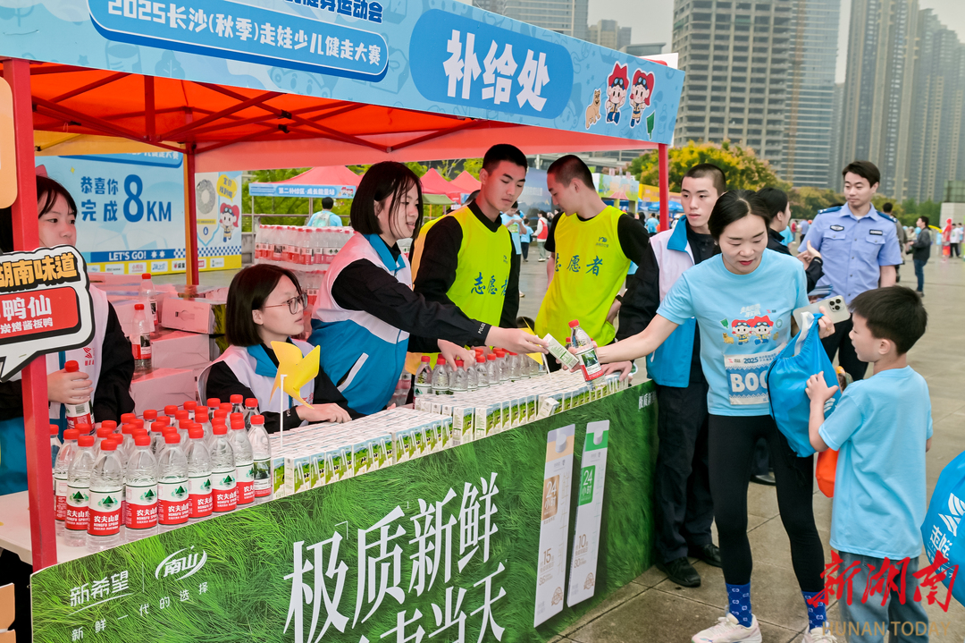 9月21日,以“走走跑跑寻宝藏”为主题的2025长沙(秋季)走娃少儿健走大赛圆满落幕。数千组家庭组成的“遛娃大部队”沿浏阳河与湘江一路前行,共同完成了12公里的亲子徒步挑战。作为大赛的赞助商,新希望南山为参赛家庭提供了新鲜、营养、优质的牛奶产品,全程助力能量补给,传递科学健康的亲子生活理念。