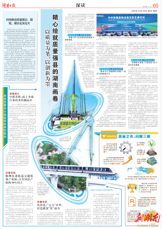 这是湖南制造业创新发展、产业提质增效的生动实践。据介绍,我省先后出台《质量强省建设纲要》《“十四五”质量强省发展规划》《省长质量奖管理办法》等制度举措,从制度层面为推动质量强县建设提供政策支持。