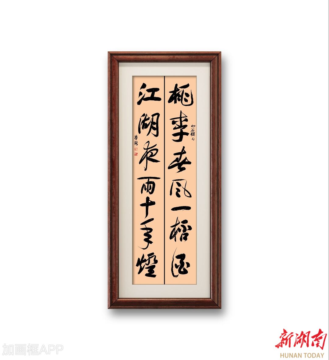 我书房挂的就是一幅他的书法作品。我装裱后,拍照片给他看。他问,老师还可以吗?我说,你都加入了中国书法家协会,已是“国家级”书法家的字,怎么不好看呢!他听后哈哈一笑说,老师您又嘘学生毛了。