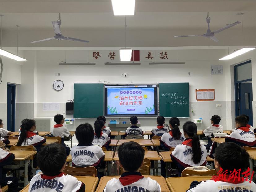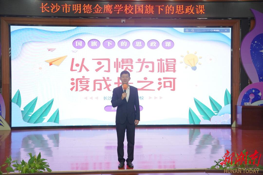 新湖南客户端9月23日讯(通讯员 刘佳妮)中学阶段是习惯养成的关键期,更是青少年塑造自我、奠基未来的重要阶段。为引导初一年级学子重视习惯力量、主动培养优良品行,9月22日,长沙市明德金鹰学校初一全体师生齐聚各班教室,在雄壮的国歌声中,共同举行“以习惯为楫 渡成长之河”国旗下思政课。