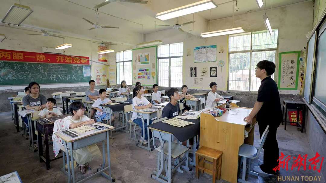 唐顺杰是汉口学院大三学生,今年暑假,他回到家乡中沙镇,加入由镇团委发起的“沙砾计划”大学生返家乡社会实践项目,主动开办篮球公益培训班。和他一样,湖南人文科技学院书法专业大二学生熊勇超也返乡开设书法班,用墨香陪伴孩子们度过充实的夏日。两个兴趣班共招收镇内中小学生30余名,为乡村孩子的假期生活增添了别样色彩。
