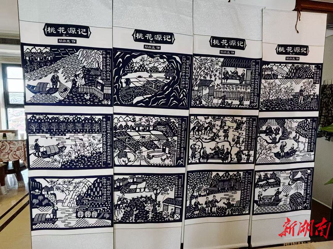 在系统梳理桃源非遗图谱的基础上,她还创新性地将桃源刺绣、木雕等非遗元素融入剪纸创作,形成独具特色的桃源剪纸系列。这些作品既保留了传统技艺的精髓,又注入了当代审美元素,让古老的非遗焕发出新的生机。