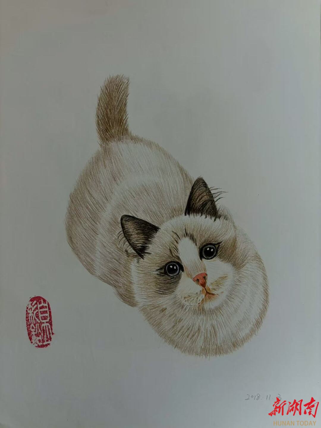 在她家里,一沓沓彩铅、钢笔画稿整齐叠放,猫鸟虫鱼栩栩如生,笔触细腻、形态灵动,难以想象出自一位近80岁的老人之手。