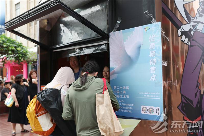 9月23日上午9点半,第二十四届中国上海国际艺术节首轮优惠票通过“线上+线下”双渠道同步发售。杭州市民蒋先生的身影又出现在了南京路步行街演艺大世界尾票亭的队伍前头,这是他连续第三年赴约。为了“一网打尽”想看的演出,他昨晚下了班就直奔高铁站,半夜12点就在售票亭前等候了。天亮后,队伍越来越长,不少市民拖着行李箱前来,手拿节目清单低头认真查阅,形成了一道独特的文艺风景线。