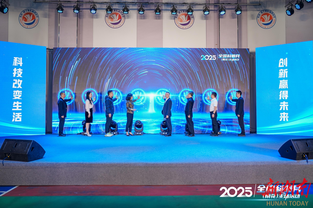 活动以科普月主题宣传片循环播放开篇,砂子塘东澜湾小学舞蹈队的《太空,你好》点燃现场氛围。随后,领导致辞、科普讲解分享、舞台剧展演、优秀青少年科技创新人才颁奖等环节依次开展,生动鲜活的科普内容赢得阵阵掌声。主场活动结束后,长沙县职业中专学校张勇军老师带来《仰望天空扬帆星途大海》科学报告会,成果展示区的学生科创成果与交流实践区的互动体验活动同步推进,让师生在参与中感受科学魅力。