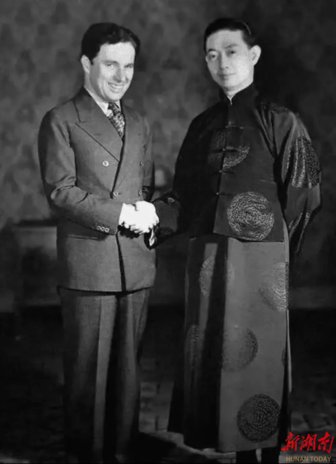 卓别林(左)与梅兰芳(右)珍贵合影。资料图