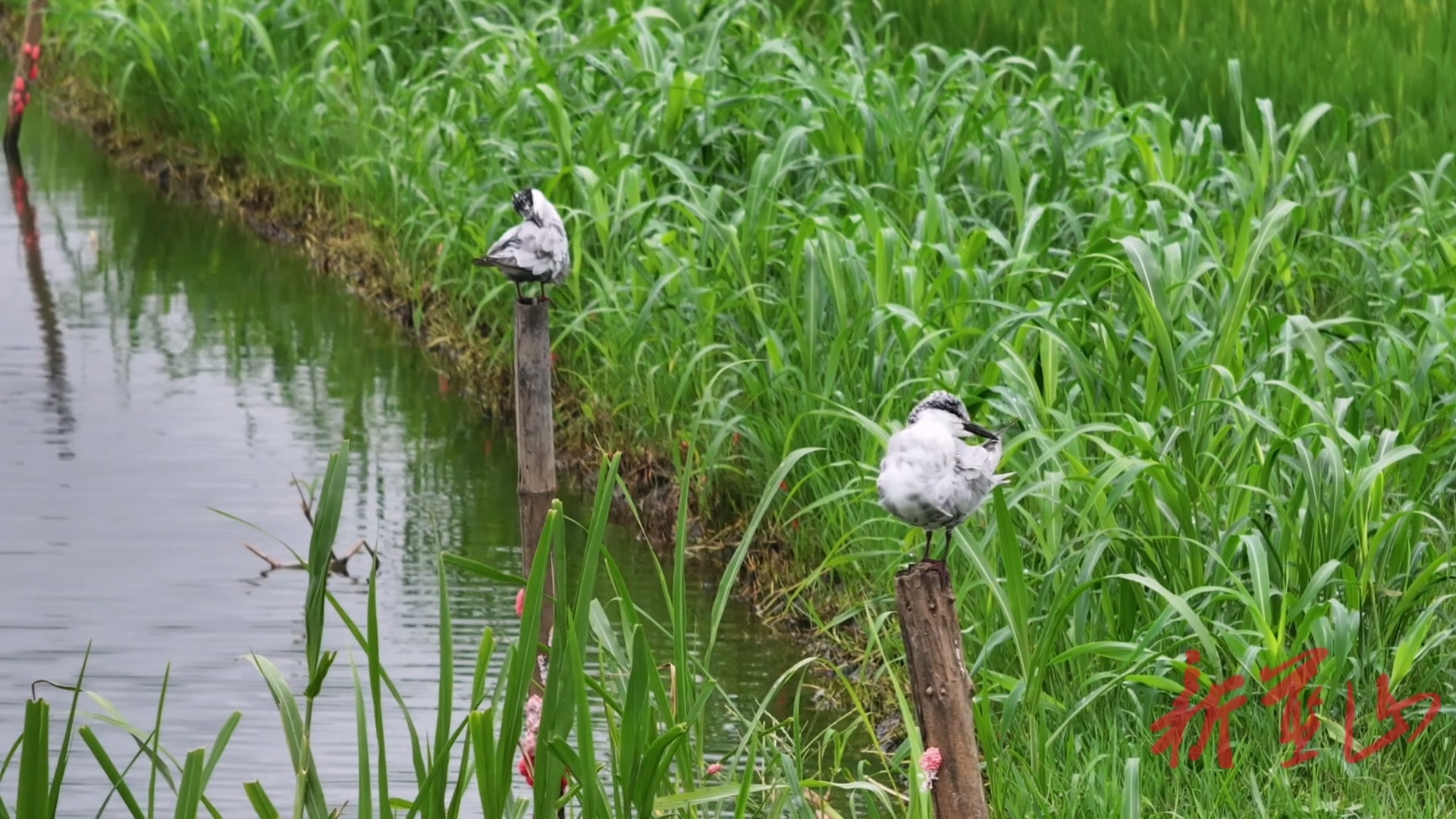 在舜水河畔湿地,上百只白鹭在湿地上空翩翩飞舞,小䴙䴘则发出一声声清脆的啼鸣,这里俨然成了候鸟的乐园。不远处,成群的须浮鸥时而在水面上空振翅悬停,时而俯冲扎入水里捕食,时而停歇在树桩上梳理羽毛,灰白色的羽翼在阳光下闪烁,浅开叉的尾羽划过水面激起层层涟漪。