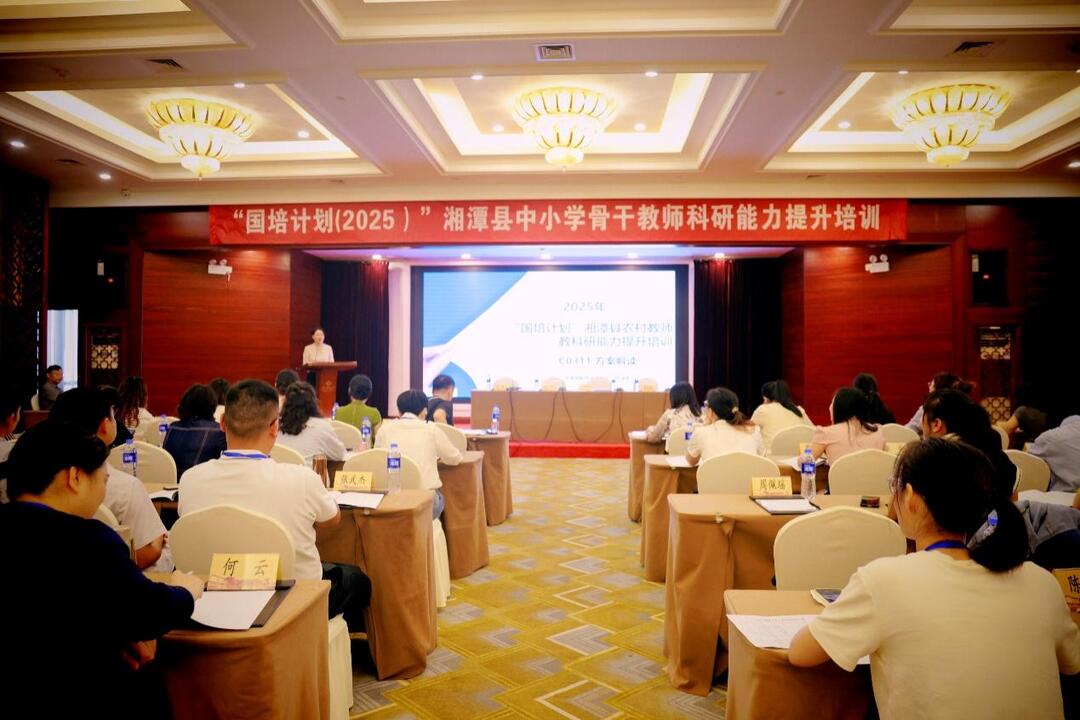 2025年9月22日,由湖南科技大学外国语学院承办的“国培计划(2025)” 湘潭县骨干教师科研能力提升培训开班典礼在苏州金陵南林酒店隆重举行。典礼由学院党政办主任尹恒主持,来自湘潭县的70名骨干教师齐聚一堂,开启研修新程。