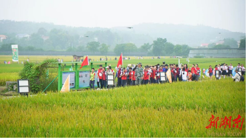 Around 500 people gathered at the park, including industry experts from the Hunan Association for Science and Technology, faculty and students from science and technology backyards, school teachers and students, and representatives from agricultural enterprises. In the 1,500-mu (100-hectare) core area of the park, 410 varieties of high-quality rice stretched out across the fields, swaying in the autumn breeze, forming a vast golden sea.