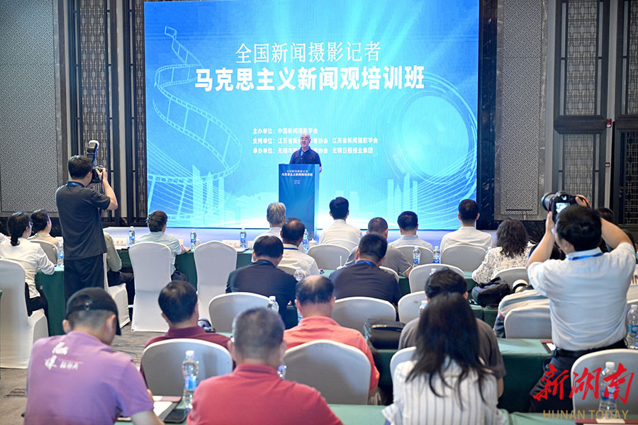 新湖南客户端9月23日讯(记者 郭立亮)今天上午,全国新闻摄影记者“马克思主义新闻观与新闻摄影业务”培训班在江苏无锡开班。培训班由中国新闻摄影学会主办,无锡市新闻工作者协会、无锡日报报业集团承办。为向全国新闻摄影记者提供更多更好的培训与学习交流平台,强化全国新闻摄影记者的政治素养、专业能力与责任担当。来自全国各地新闻摄影界的专家学者与骨干记者齐聚太湖之畔,用镜头丈量历史厚度,在光影交错间瞭望时代发展。