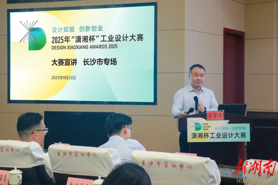 湖南日报·新湖南客户端9月24日讯(通讯员 陈文成)9月23日下午,2025年“潇湘杯”工业设计大赛(长沙市专场)宣讲活动在长沙市政府第二办公楼政务服务中心三楼多功能会议厅顺利举行。本次活动由长沙市工业和信息化局、湖南省工业设计协会联合主办,以“设计赋能 创新创业”为主题,旨在进一步宣传推广大赛、扩大赛事影响力,吸引更多优秀主体参赛,持续提升大赛品牌价值,为长沙制造业高质量发展注入工业设计新动能。