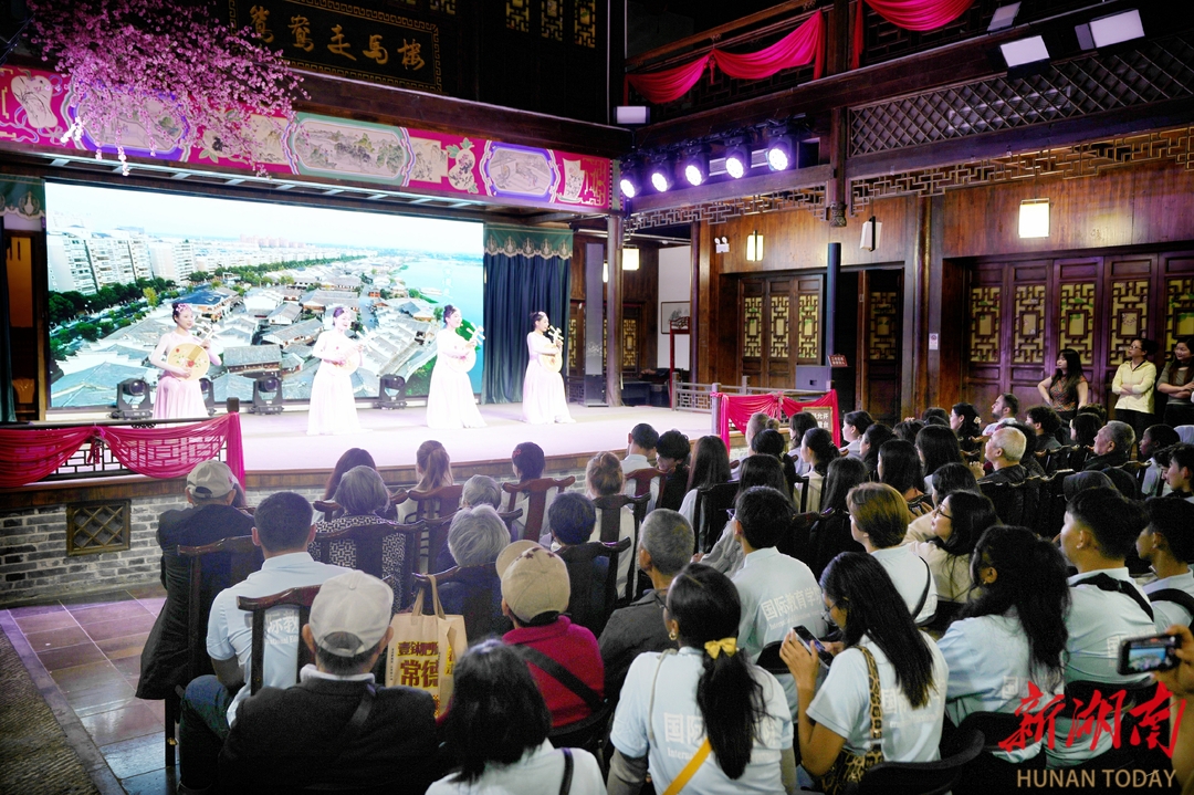 现场,地方特色文化展演精彩纷呈。常德丝弦婉转悠扬,汉剧高腔表演铿锵有力……这些承载着历史与文化的曲目,经演员们的精湛演绎,深深吸引着留学生们。他们纷纷举起手机记录精彩瞬间,快门声与掌声此起彼伏。