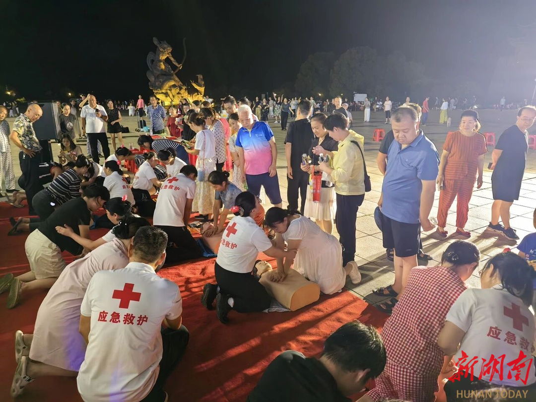 9月16日晚,岳阳市巴陵广场灯火通明,由岳阳市红十字会、岳阳市红十字应急救护志愿者协会共同主办的第26个世界急救日主题活动在此隆重举行。聚焦“急救与气候变化”的主题,协会20余名红十字志愿者放弃休息时间,为市民带来一堂生动实用的“生命教育课”,现场发放宣传资料2000余册,吸引众多市民驻足学习,赢得广泛好评。