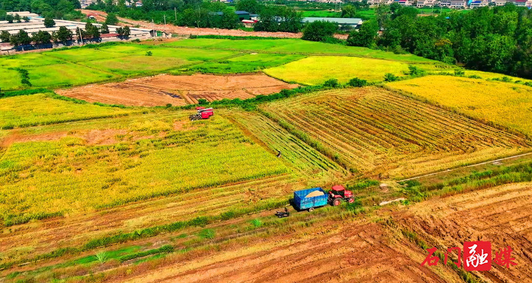 金秋时节,石门县易家渡镇军档桥村、夹山镇西周村一带,连片的节水抗旱稻迎来收获期,金黄的稻穗沉甸甸,承载着农民的希望。