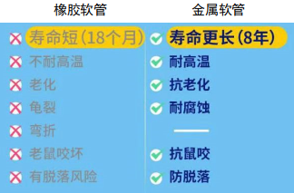 更换使用专用金属软管(不锈钢波纹软管或金属包覆软管)