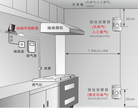 ①使用家用可燃气体泄漏报警装置