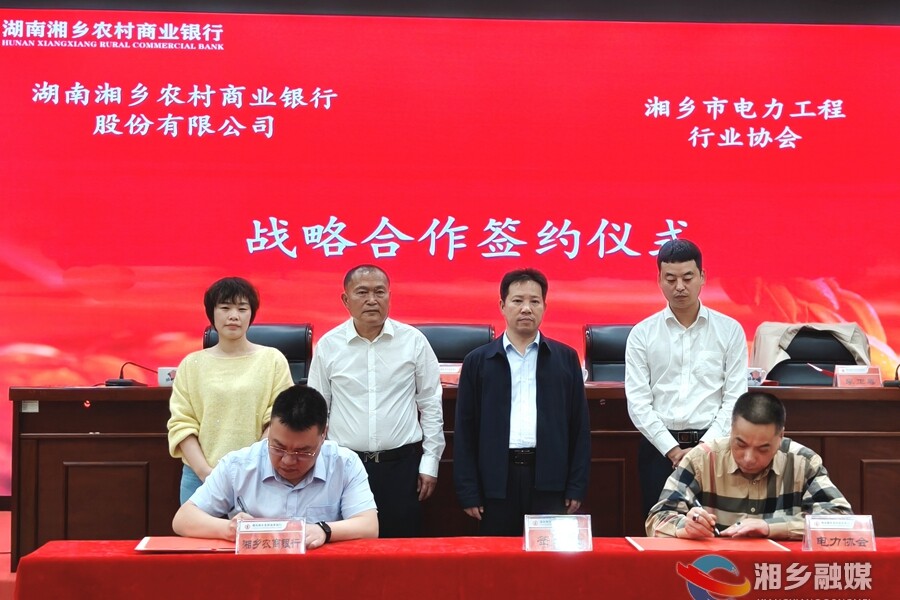 湖南日报·新湖南客户端9月25日讯(通讯员 何佳萱)9月23日,湖南湘乡农村商业银行股份有限公司(以下简称“湘乡农商银行”)与湘乡市电力工程行业协会签订战略合作协议,通过“政银协”联动,充分发挥金融服务实体经济作用,促进电力产业发展。
