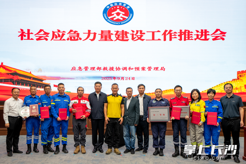9月24日,应急管理部救援协调和预案管理局在京召开社会应急力量建设工作推进会。大会表彰了赴缅甸地震救援的集体和个人,我省社会应急力量岳麓蓝天救援队队长谭章、副队长王国强获应急管理部嘉奖。