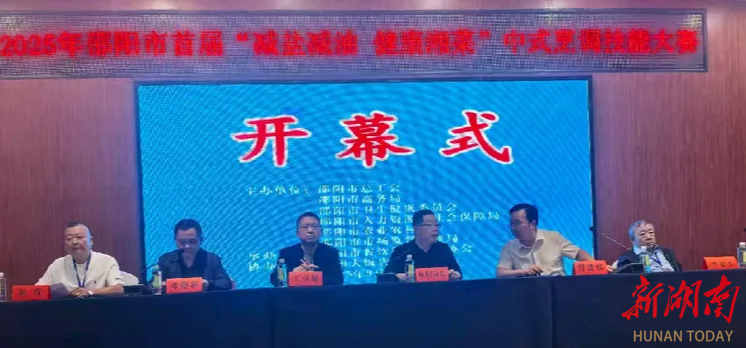 9月24日上午9时,由邵阳市总工会、邵阳市商务局、邵阳市卫生健康委员会、邵阳市人力资源和社会保障局、邵阳市农业农村局、邵阳市市场监督管理局联合主办和邵阳市餐饮行业管理协会承办的2025年邵阳市首届“减盐减油·健康湘菜”中式烹调技能大赛(决赛)暨开幕式在邵阳大饭店隆重举行。