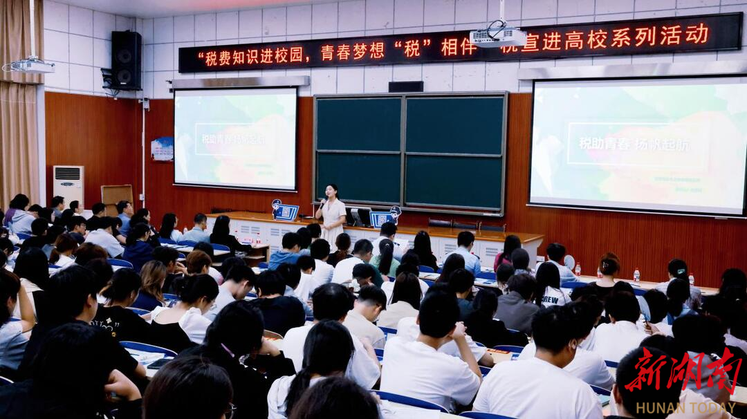在湖南文理学院会议厅,常德市税务局为高校学子带去了一堂税费政策普法课。授课以“税助青春 扬帆启航”为主题,围绕高校毕业生就业创业税惠政策、个人所得税APP操作、城乡居民医保缴纳等与高校学生密切相关的问题,通过政策解读、案例分析、互动交流等形式,将复杂专业的税费政策转化为生动有趣的鲜活语言。在“有奖问答”环节,在场学生踊跃参与抢答,现场氛围火热。在寓教于乐中引导大学生懂税、会税、善税,推动税务与高校的“双向奔赴”。“这堂课真的很及时,让我了解到有这么多税费优惠,打消了我的很多顾虑,更加有底气创业了!”湖南文理学院的学生梁冬梅信心满满。