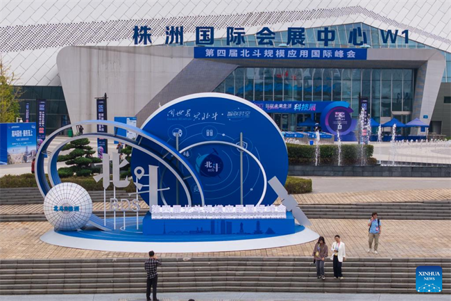 People visit the 4th International Summit on BeiDou Navigation Satellite System (BDS) Applications in Zhuzhou, central China's Hunan Province, Sept. 24, 2025. The 4th International Summit on BDS Applications kicked off here on Wednesday.