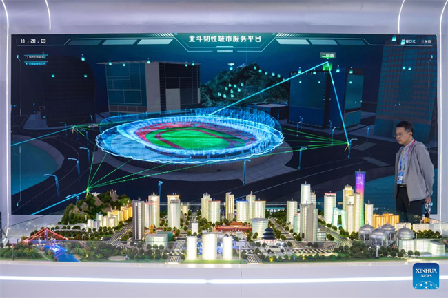 In addition to the opening ceremony, there are also a high-end keynote speech, thematic forums, academic exchanges and a demonstration exhibition, among other activities, to showcase the deep integration of the large-scale application of BDS with the economy and society. (Xinhua/Chen Sihan)