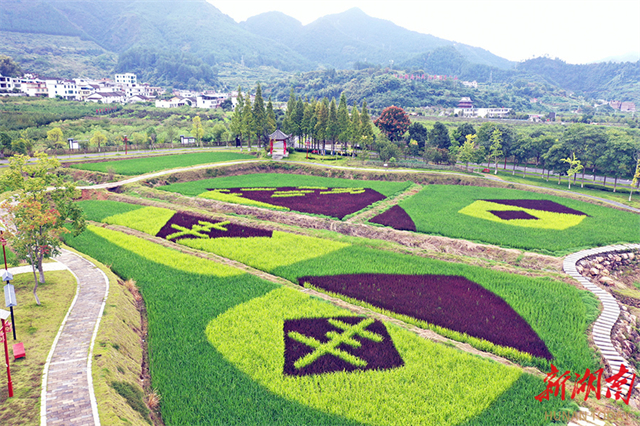 On September 23, a colorful paddy field painting of bountiful harvest unfolded across paddy fields at Shazhou Village, Wenming Yao Ethnic Township, Rucheng County. The main venue events of Hunan Province celebrating the 2025 Chinese Farmers' Harvest Festival were held here on September 23 and 24. The events were co-hosted by the Hunan Provincial Department of Agriculture and Rural Affairs and the Chenzhou Municipal People's Government. (Photo/Tian Chao and Zou Shangqi, Hunan Daily)