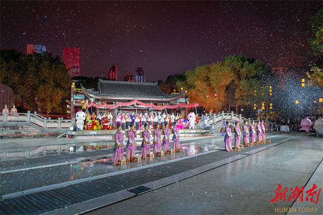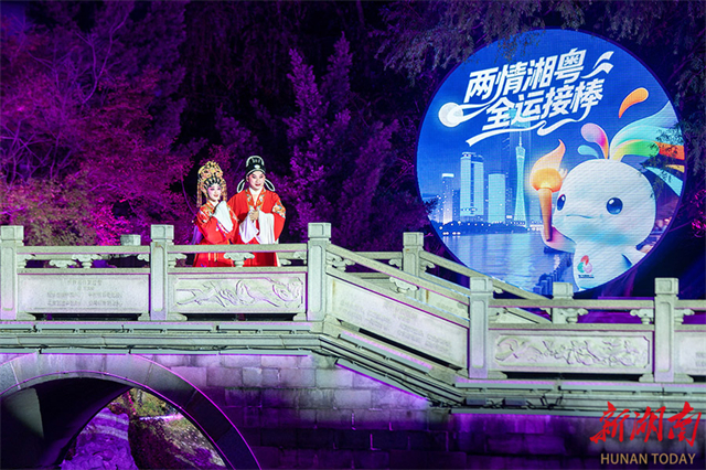 On September 23, artists performed the Cantonese opera "Blooming Flowers and Full Moon" at the Jiangtian Muxue Cultural Park, Orange Isle Scenic Area, Changsha. The performance was part of the "Hunan-Guangdong: A Bond of Friendship, Passing the Torch for the National Games" themed event held in Changsha on the same day. China's 15th National Games will open in Guangzhou, Guangdong Province on November 9, 2025. Hunan Province will be the host for China's 16th National Games in 2029. (Photo/Gu Pengbo, Hunan Daily)