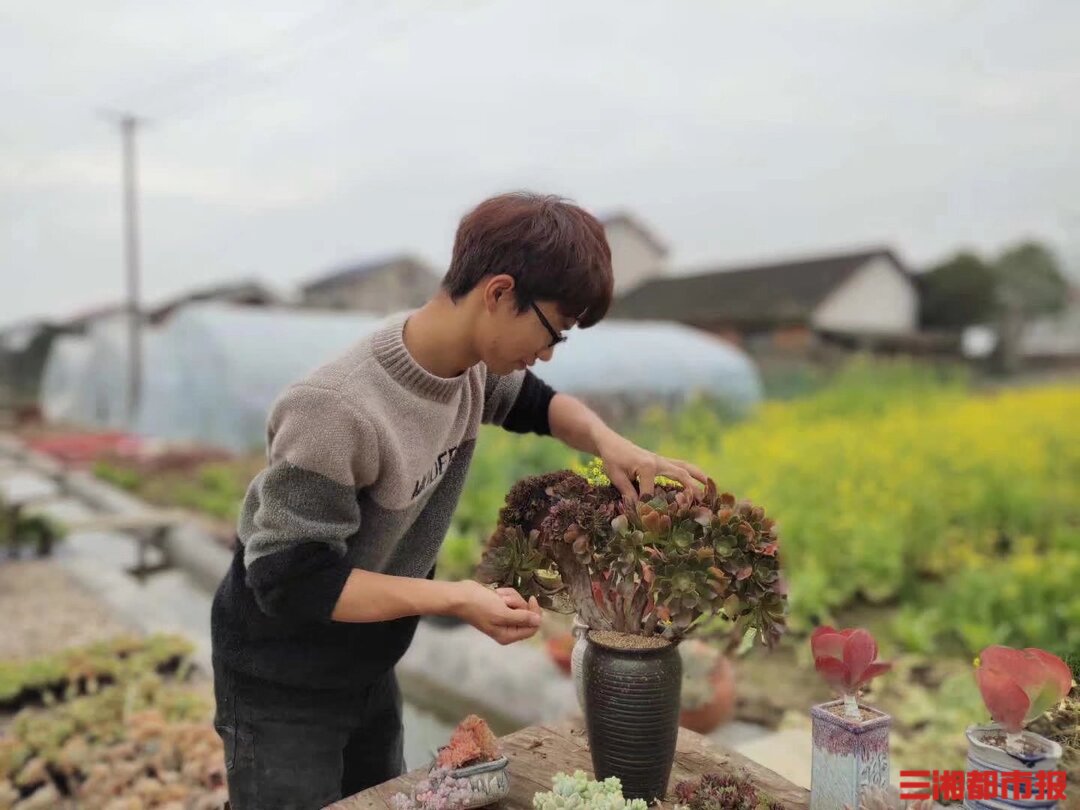 “五一”假期,同学们出游放松时,他背着多肉盆栽走进靖港古镇,用“吸辐射”“好养活”的卖点打动游客,成功赚到了3000元创业资金。