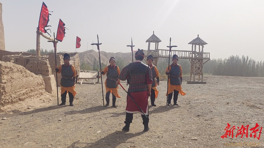9月敦煌,墩墩山烽燧下,阳关景区前鼓声震天。“入关!”身着铠甲的“守将”鸣旗迎客,游客们在极具仪式感的氛围中,开启一场穿越千年的边关之旅。昔日绝域的阳关道,一派热闹景象。