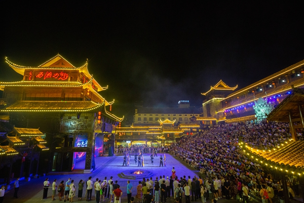 好戏连台演,“夜色大戏”更为双节添彩。为应对双节出游高峰,经典民俗演出《魅力湘西》将在国庆期间加演,将演出场次增至3或4场,为不同时段游玩的游客提供更多观演选择。此外,吴家峪门票站广场将举办篝火狂欢、山歌擂台、“土家蹦迪”等互动活动;滨河公园更是设置了晚间“路演”区,传统器乐弹唱、阳戏、打溜子等本土文化节目展演,让市民与游客在夜色中感受湘西民间艺术的魅力。