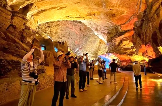 央视《正点财经》《经济信息联播》的镜头里,游客在峰林“凉棚”下惬意漫步、在黄龙洞中探幽纳凉、在金鞭溪畔欢乐戏水的场景,将“清凉”转化为可感知的鲜活体验。