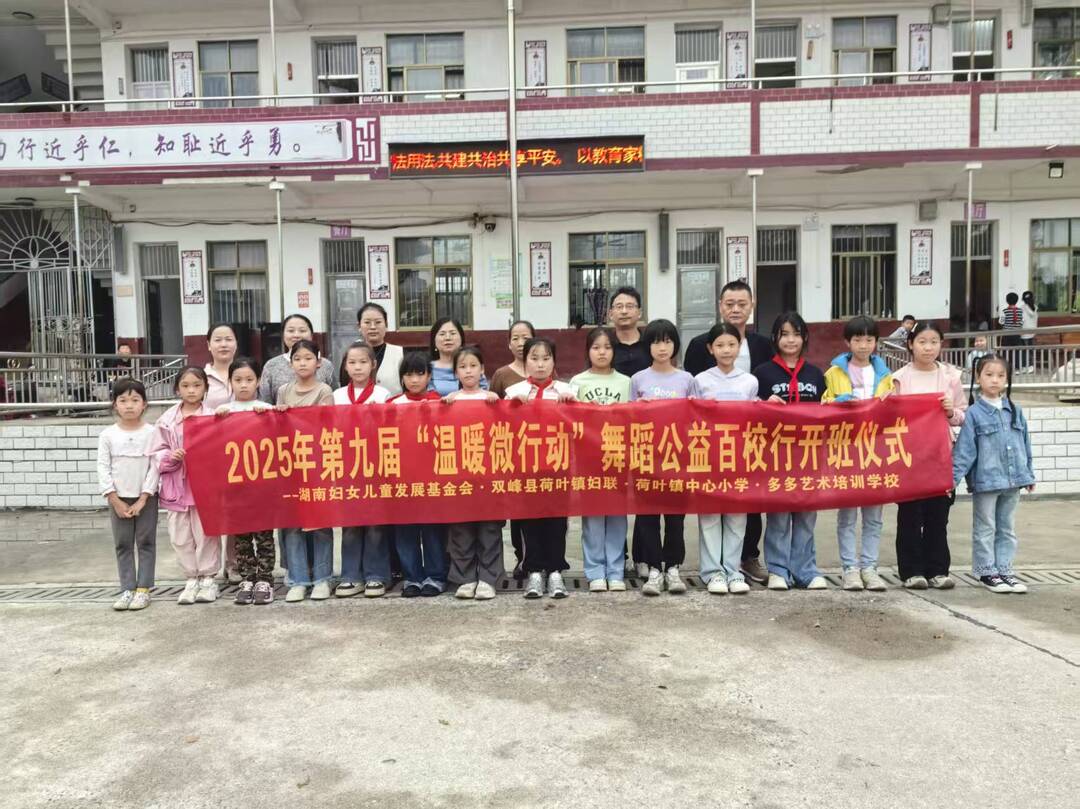 此次活动是家校社协同关爱留守儿童的生动实践——湖南妇女儿童发展基金会统筹指导、荷叶镇妇联协调推进、荷叶镇中心小学搭好育人平台、多多艺术培训学校落实专业教学,四方联动将 “美育惠民” 落到实处,助力乡村孩子在舞蹈中收获自信,在艺术熏陶中感受爱与温暖。