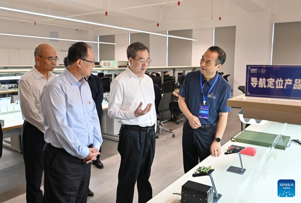 Chinese Vice Premier Ding Xuexiang, also a member of the Standing Committee of the Political Bureau of the Communist Party of China Central Committee, inspects the development and large-scale application of the BeiDou Navigation Satellite System in central China's Hunan Province, Sept. 23, 2025. Ding made an inspection tour in central China's Hunan Province on Sept. 23. (Xinhua/Yin Bogu)