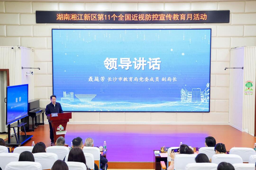 活动中,聂庭芳高度肯定了湘江新区教育系统的近视防控工作成效,同时强调,各学校要锚定“健康中国”战略目标,将近视防控纳入教育高质量发展全局;要聚焦“科技赋能”创新路径,深化智能监测与医教协同;要构建“家校社协同”新格局,形成“人人参与、全域覆盖”的防控合力。