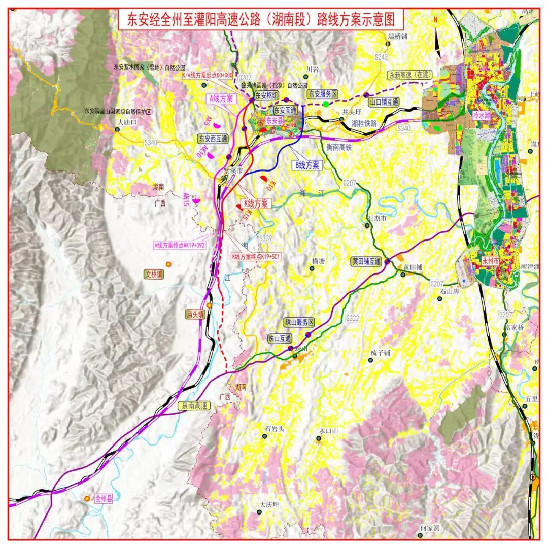 ▲东安经全州至灌阳高速公路(湖南段)路线方案示意图