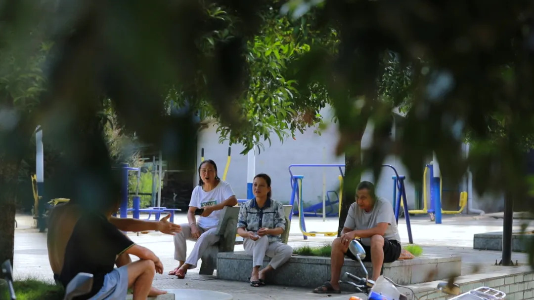 ▲蒋家村村民在娱乐文化广场休闲娱乐