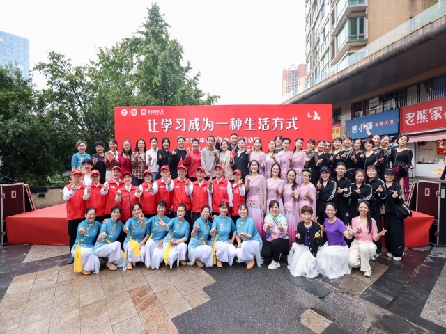 “让学习成为一种生活方式”,9月24日上午,长沙民政职业技术学院主办,圭塘街道劳动东路社区党总支、新城新世界物业有限公司、湖南快乐老人传媒有限公司联合承办的2025年全民终身学习活动周“文化社区乐银龄”主题活动,在新城新世界小区前坪热闹开启。长沙民政职院继续教育学院院长喻晓琴,劳动东路社区党总支书记云石凤出席。本次活动吸引了600余人现场观摩。