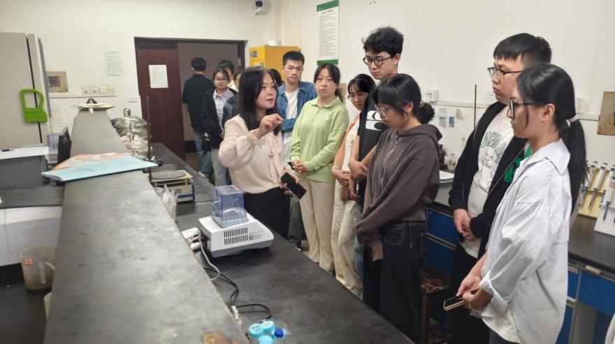 理论培训结束后,在吴玲博士的带领下,研一新生前往课题组实验室进行仪器操作现场培训。吴玲重点演示了油浴锅、离心机、管式炉等常用设备的正确操作方法,同时特别指出了违规操作可能带来的严重后果,让新生对安全操作产生深刻认知。